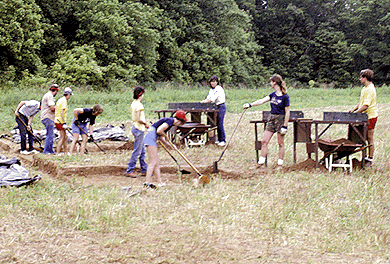 Welcome to the Electronic Dig of Occaneechi Town! This section allows you to re-create, on the computer, the experience of excavating an archaeological site, without actually getting dirty! You decide where to dig, and the computer shows you the result. In this way, you can explore the site in much the same way an archaeologist would, opening the site a section at a time, and deciding where to dig next based on the results of your previous work. For an added note of realism, you can also work (as archaeologists always do) with a limited budget. This forces you to think about how to best use your limited funds in order to get the greatest amount of information.