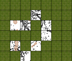 Once you have finished selecting squares, click on the "EXCAVATE" button. This will electronically remove the plow zone from the squares that you selected, revealing the features below. (Remember, postholes and wall trenches are shown in black; features are tan-colored.) You now will have access to all of the archaeological information that was obtained from those squares. Keep in mind that you do not have to make your entire selection at once. You may want to excavate a few squares, see what you find, and then select additional ones based on your newly acquired information. This is exactly the way that most real excavations proceed.